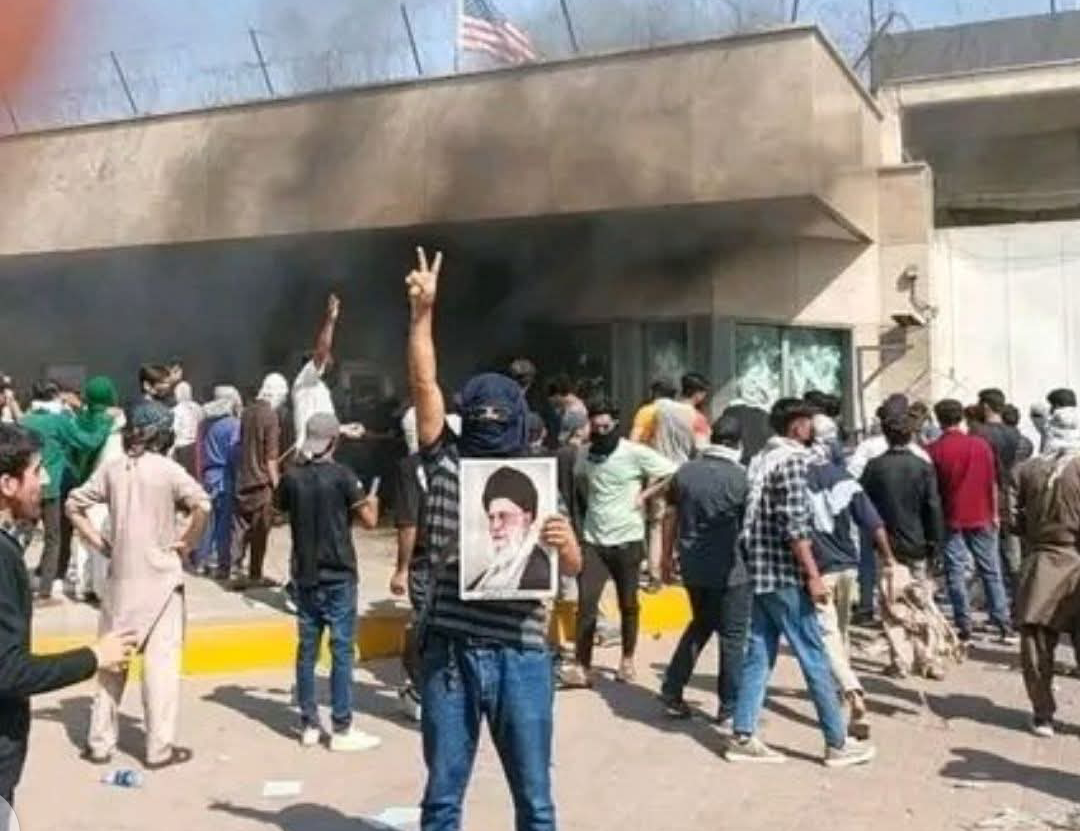 د عراق په پلازمېنه بغداد کې مظاهرهچیان هڅه کوي چې ګرین زون ته ننوځي، هغه سیمه چې د امریکا سفارت پکې موقعیت لري.