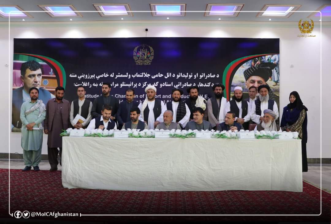 د صنعت او سوداګرۍ وزیر د هیواد د محصولاتو صادراتو زیاتوالي ته په اشارې سره وویل چې دغه وزارت د دولتي ادارو ، خصوصي سکتور او نړیوالو مرسته کونکو په همکارۍ هڅه کوي چې د کورنیو تولیداتو په ځانګړي ډول د هیواد کرنیزو محصولاتو لپاره نړیوال سندونه ترلاسه کړي.