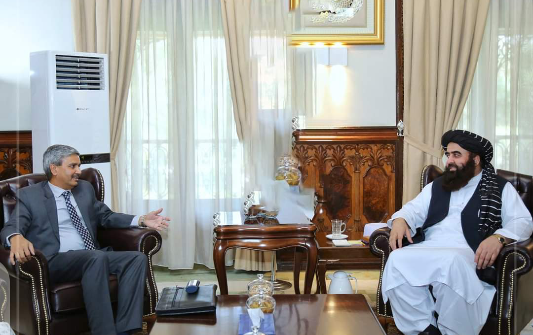 د طالبانو د بهرنیو چارو وزیر مولوي امیر خان متقي د هندوستان د بهرنیو چارو وزارت د جواینټ سکرټري جي پي سنګ او مل پلاوي سره ولیدل.