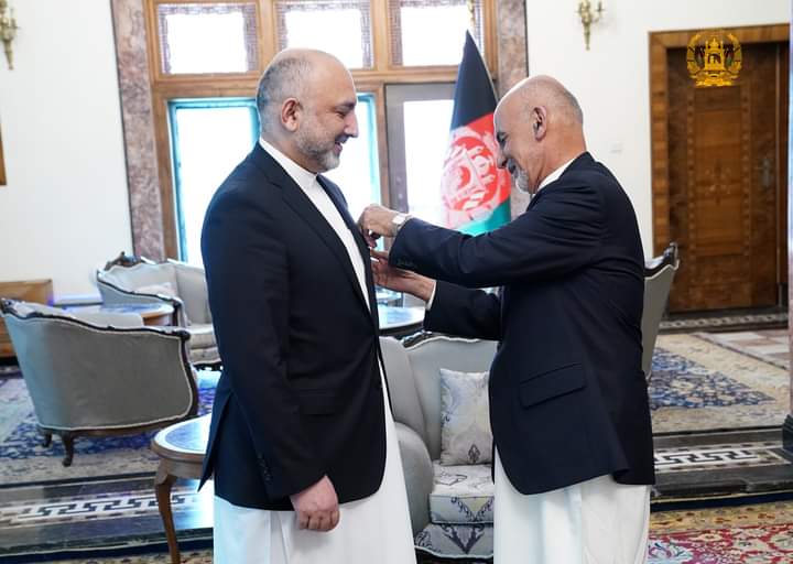 جمهوررئیس غني محمد حنیف اتمر ته د غازي امیر امان الله خان دولتي نښان او میرویس ناب ته د غازي میرمسجدي خان دولتي مډال د ورکړې پرمهال دواړو ته په ورسپارل شویو چارو کې د بریالیتوب هیله وکړه.