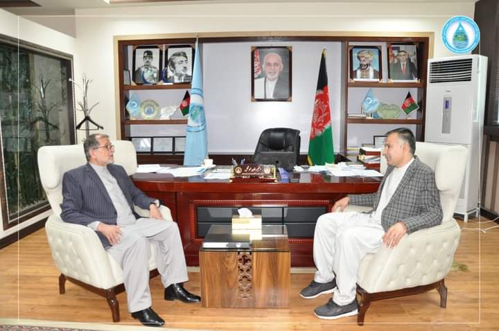 د اوبو چارو د تنظیم ملي ادارې عمومي رئيس ښاغلي انجنیر خان محمد تکل په خپل کاري دفتر کې د پنجشیر والي کمال الدین نظامي سره وکتل.