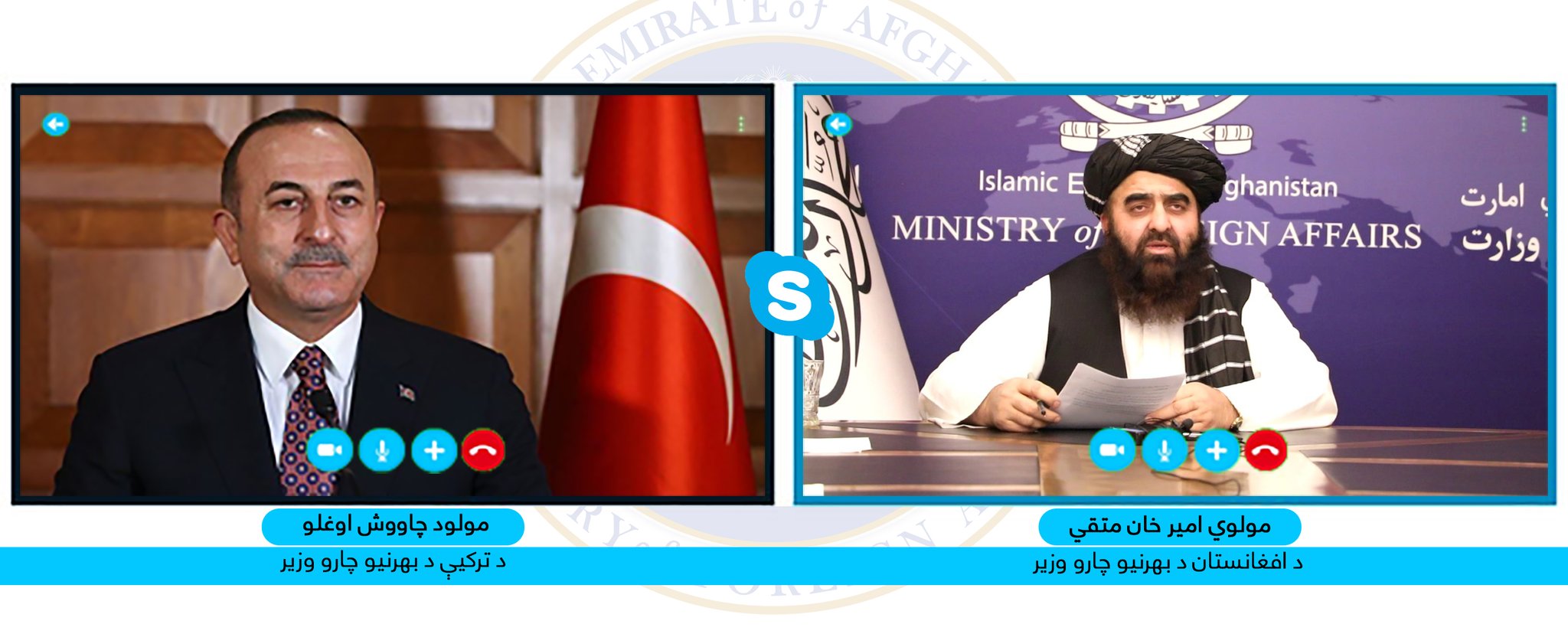 نن د بهرنیو چارو سرپرست وزیر مولوي امیر خان متقي د ترکيې دبهرنیو چارو له وزیر مولود چاووش اوغلو سره تلیفوني خبرې وکړې.
