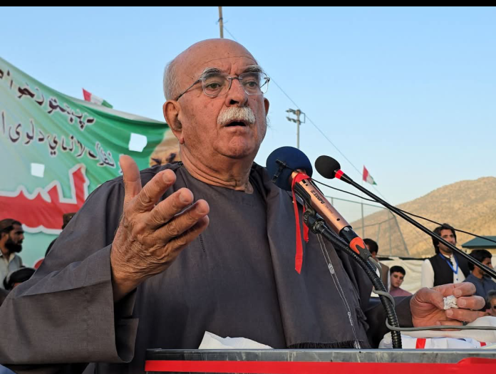 اڅکزي زیاته کړه: “زموږ خاوره له وسایلو ډکه ده، خو پښتانه اړ ایستل شوي چې د رزق لپاره د ملک په نورو برخو او بهر ته مزدورۍ ته لاړ شي. اوس مهال یو غیر قانوني او غیر منتخب حکومت پر هېواد تپل شوی — دا د زور، درغلۍ، او پیسو له لارې جوړ شوی دی.”