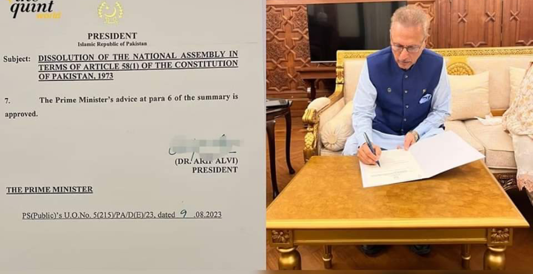 تېره ورځ د پاکستان صدراعظم شهباز شریف ولسمشر عارف علوي ته په یوه لیک کې د ملي اسمبلۍ د منحلولو غوښتنه کړې وه چې ولسمشر یې غوښتنه منلې او یاد لیک یې لاسلیک کړی دی.