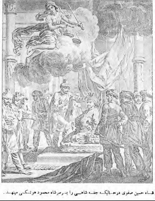 کله چې شاه محمود هوتکی د ایران ښارونه یو د بل پسی نیول ایرانی واکمنانو باندي دنیا تنګیدله اصفهان ۹ میاشتی د افغانانو لخوا محاصره وو قحطی او لوږه دومره ډیره سوه چې خلګو ځان د ساتلو لپاره خره، آسان ، حتا سپیان خوړل ویل کیږي په سنه ۲۱/اکتوبر/۱۷۲۲ د فارس (ایران) واکمن سلطان حسین صفوی د غم جامې په تن وي د اصفهان په کوڅو کې په ژړا ګرځیدي په لوړ ږغ ويل نن چې څه بد بختي پر ایران او ایرانیانو باندی راغلي دا ټول زموږ د خاین،بد بینه،ناصحان،مشرانو د لاسه زه مجبور یم چې د ایران تاج او تخت افغانانو ته ورتسلیم کړم ددې حالت په لیدو سره ټولو ورسره ژړل.