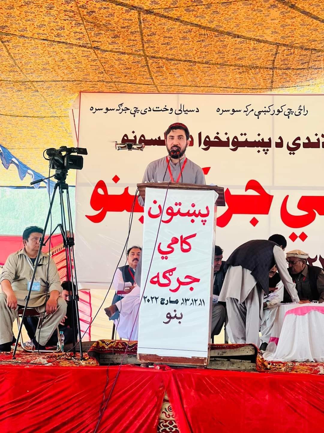 د پښتون قامي جرګې په دومه ورځ د پښتون ژغورنې غورځنګ مشر منظور پښتون ته وینا وکړه