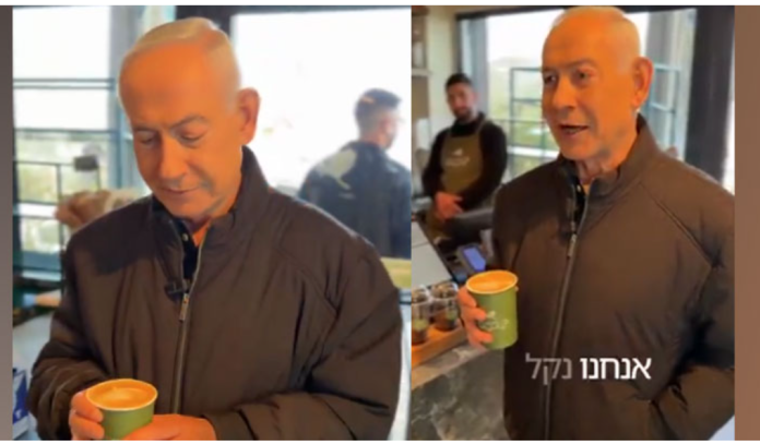 په ټولنیزو رسنیو کې خپره شوې ویډیو کې نتنیاهو لیدل کېږي چې په یو کافه کې قهوه اخلي.