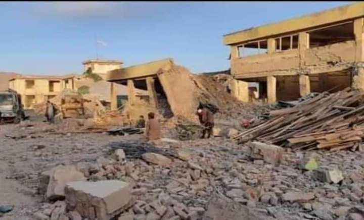 په هغو تصویرونو کې، چې پر ټولنیزو رسنیو خپاره شوي لیدل کیږي، چې د ولسوالۍ او امنیه قوماندانۍ ودانۍ تخریب شوي او له ولسوالۍ څخه توکي او وسایل لوټ شوي.