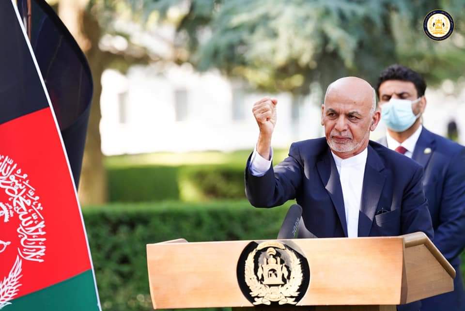 اشرف غني په ارګ کې د ملي دفاع، کورنیو چارو او د کلیو او پراختیا وزارتونو د سرپرستانو او د وسله وال پوځ د لوی درستیز د معرفي په مراسمو کې ویلي، جګړه طالبانو پیل کړې او مسوول یې همدوی دي.