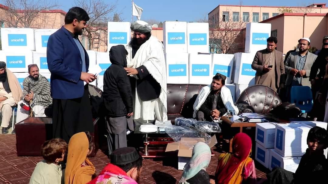 د یونېسف له خوا د برابره شوې مرستې یوه برخه بې وزلو او غریبو کورنیو ماشومانو ته هم وکړل شوه.
