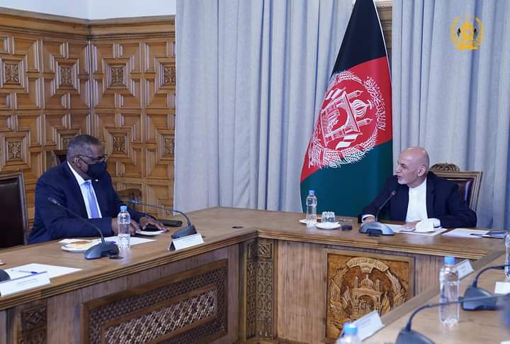 د افغانستان اسلامي جمهوریت جمهوررئیس محمد اشرف غني نن ماسپښین د امریکا دفاع وزیر لویډ جیمز اسټین سره په ارګ کې وکتل.