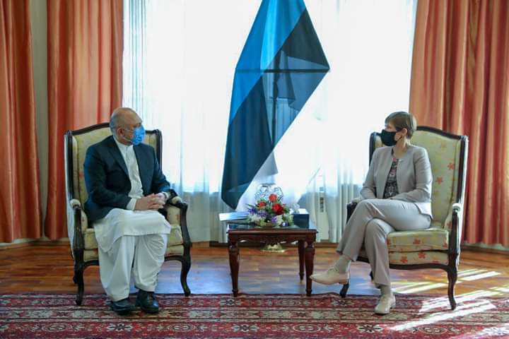 کابل – بهرنیو چارو وزیر، ښاغلي محمد حنیف اتمر په ولسمشرۍ ماڼۍ کې د استونیا له ولسمشرې، آغلې کریستی کالیولاید سره وکتل.