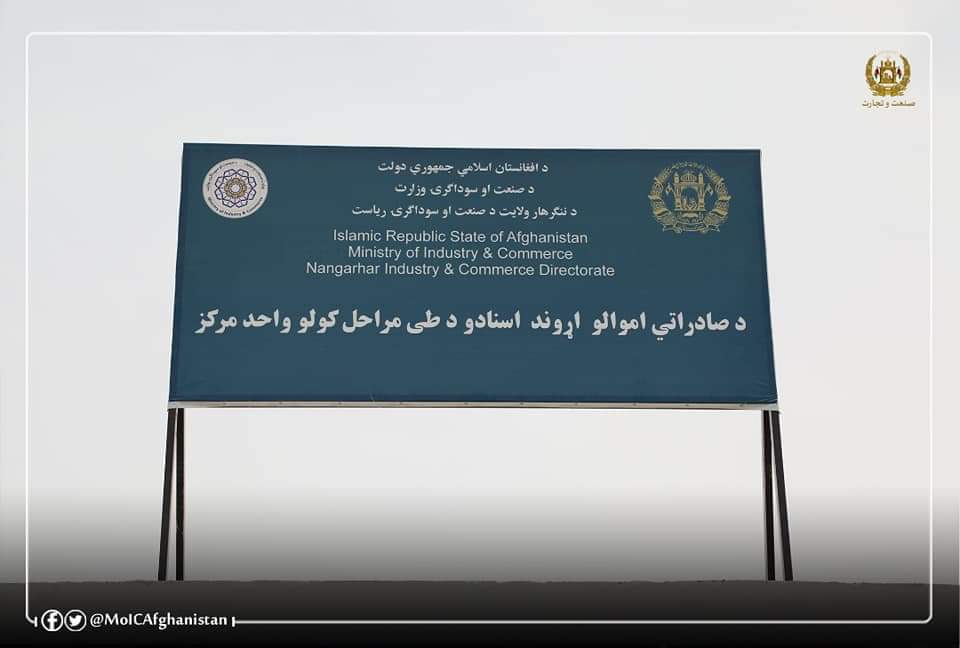 د صادراتې محصولاتود اسنادو د پروسې بهیر،واحد مرکز د صنعت او سوداګرۍ وزارت د صنعت او سوداګریزو چارو مرستیال ښاغلي محمد سلیمان بن شاه، د ننګرهار والي ښاغلي ضیا الحق امرخیل، دمالیې وزارت،دکرنې او مالدارۍ وزارت د استاز،د صادراتو په چارو کې د ولسمشر سلاکاراو د خصوصي سکتور استازو په ګډون د ننګرهارولایت د ګمرک په ریاست کې پرانستل شو.
