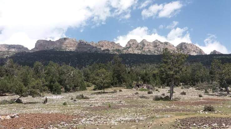 “The mass of the Takht itself may be described as a high tableland, about 8,000 feet above sea-level, bounded on its east and west margins by high rims formed by parallel ridges of rugged and steep outline. The western ridge presents the highest peak or Kaisa-ghar (11,300 feet) and the eastern culminate in the celebrated Takht-idulaimdn (11,070 feet. This tableland, with its two parallel rims, is altogether formed by a huge cap of coral limestone.(Griesbach’s Geology of the Takht-i-Sulaim) ”