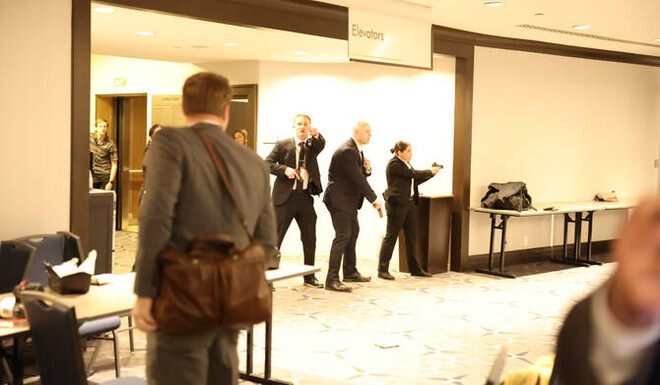 په غونډه کې سلګونو مشهور ژورنالیستان، مشهور شخصیتونه او نور په غونډه کې موجود وو، غونډه سمدلاسه پای ته ورسیده او خلک له سیمې څخه وایستل شول. د امریکا ولسمشر ټرمپ په سټیج کې ناست و او غوښتل یې چې غونډې ته وینا وکړي، بیا یو افسر د ټوپک سره هغه ته نږدې شو، چې په هغې باندې هغه ښځه چې د هغه تر څنګ ناسته وه ډیره ویره او حیرانه ښکاریده، د ځینو غږونو سره، ګډوډي وه او ټرمپ له غونډې څخه وایستل شو.