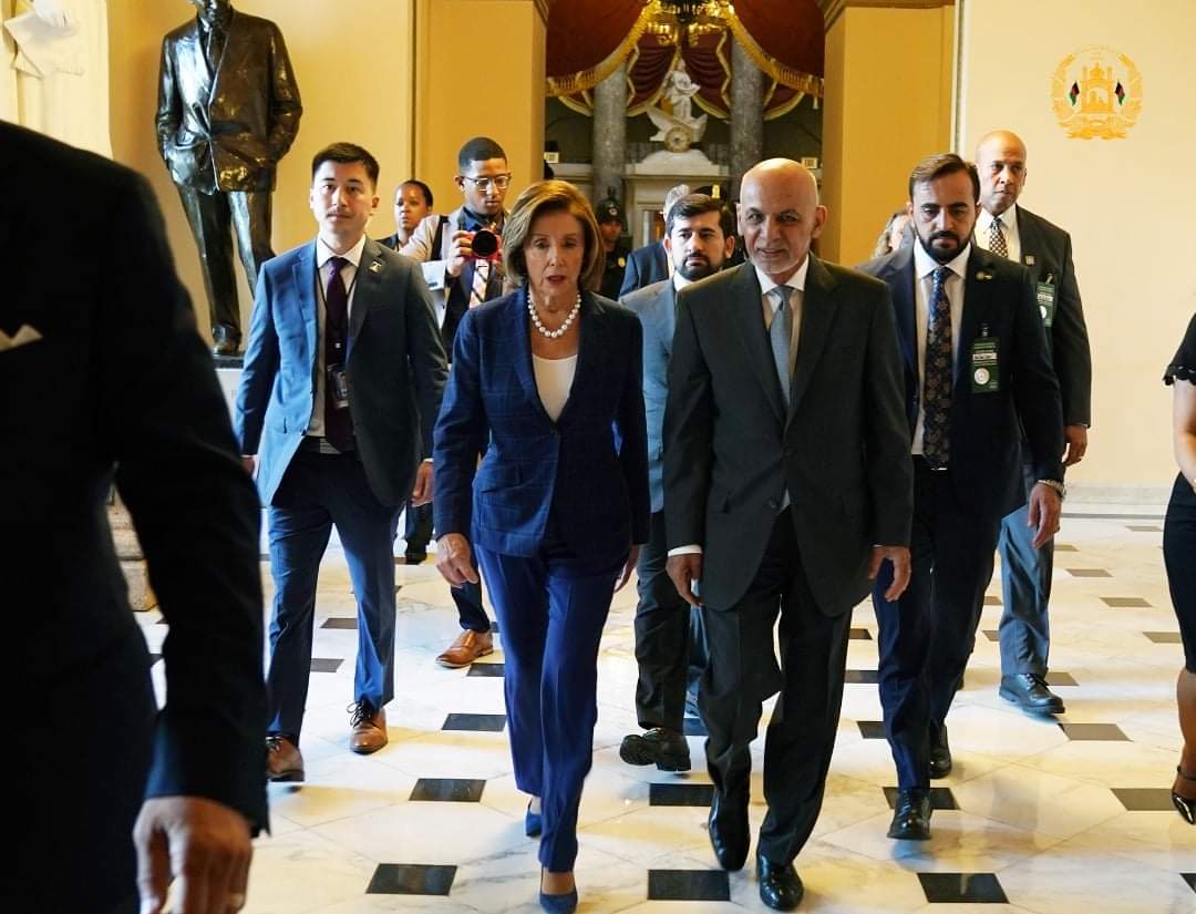 جمهوررئیس محمد اشرف غني امریکا متحده ایالتونو ته پخپل سفر کې  د هغه هیواد د ولسي جرګې مشرې نانسي پلوسي سره په واشنګټن کې وکتل.