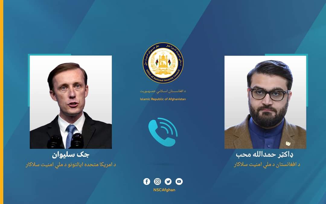 د امریکا متحدو ایالتونو د ملي امینت سلاکار جیک سالیوان سره د افغانستان اسلامي جمهوریت د ملي امنیت سلاکار حمدالله محب ټلیفوني خبرې