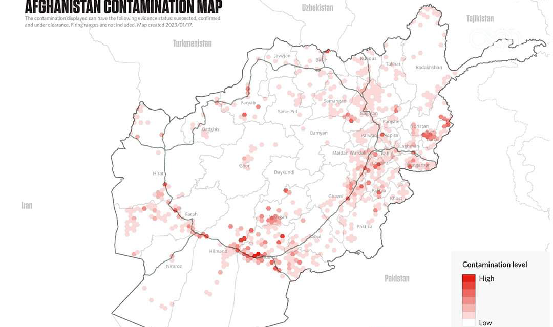 د ملګرو ملتونو د بشري چارو همغږۍ دفتر (اوچا) وايي، د لسیزو جګړو له امله، افغانستان په نړۍ کې د چاودېدونکو توکو د ککړتیا تر ټولو لوړه کچه لري.